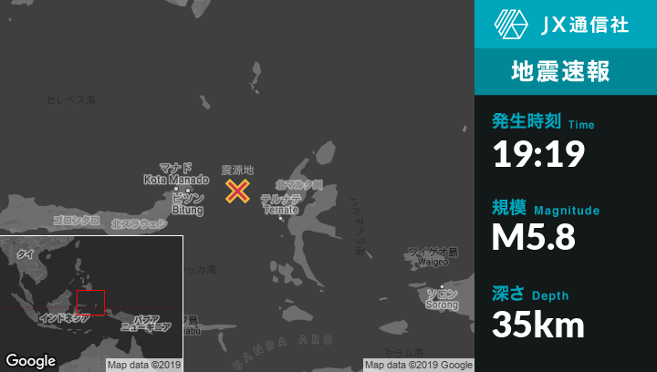| 震源地 | インドネシアのBitungから東128kmの地点 |