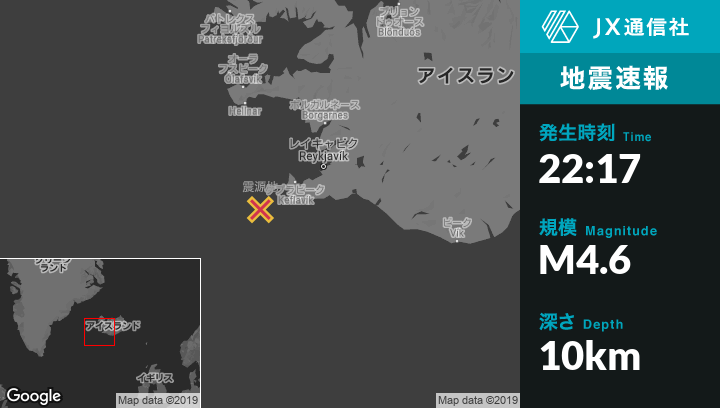 | 震源地 | アイスランドのSandgerdiから南西41kmの地点 |
