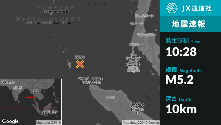 11月17日 10:28頃、インドのMoheanから東南東159kmの地点でM5.2の地震がありました。