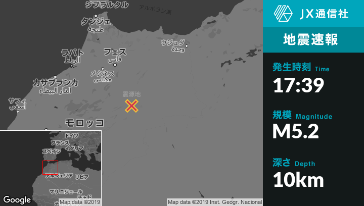 | 震源地 | モロッコのAmersidから南東22kmの地点 |