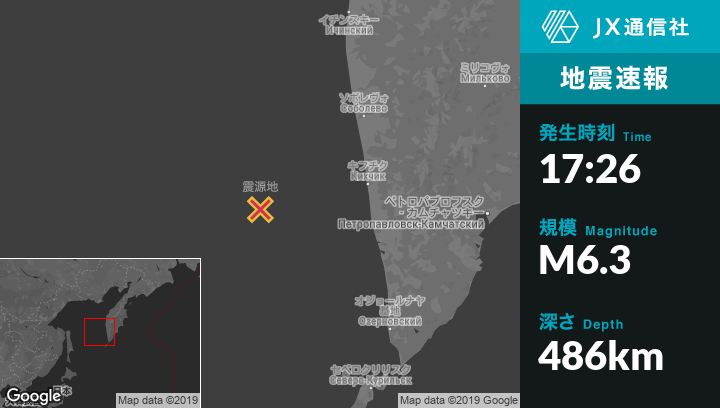 | 震源地 | ロシアのOzernovskiyから北西267kmの地点 |
