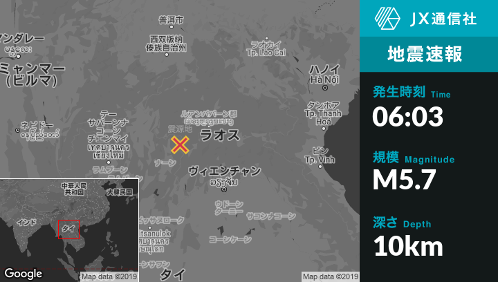 | 震源地 | タイのChaloem Phra Kiatから南東21kmの地点 |