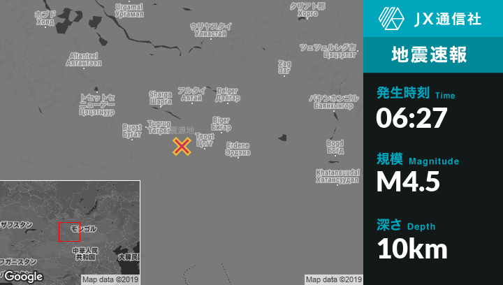 | 震源地 | モンゴルのTseelから南南東9kmの地点 |