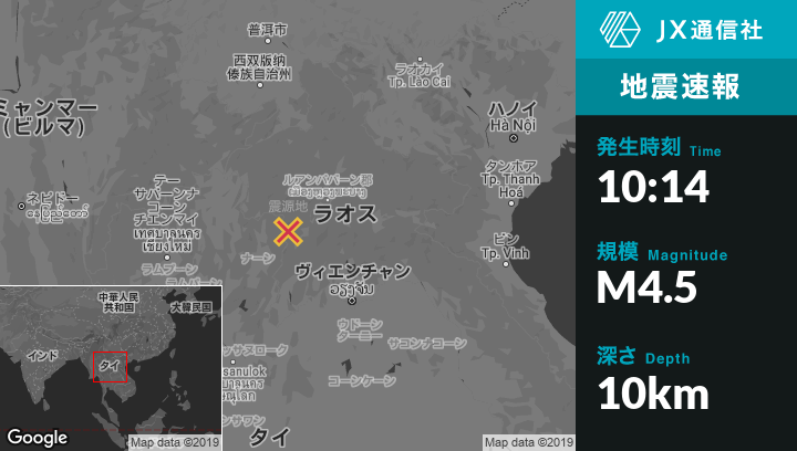 11月21日 10:14頃、タイのBo Klueaから北東35kmの地点でM4.5の地震がありました。