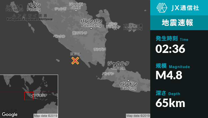 | 震源地 | インドネシアのKuripanから南西36kmの地点 |