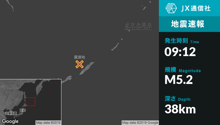 | 震源地 | ロシアのKuril'skから北東160kmの地点 |