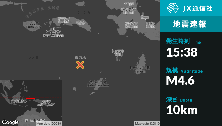 | 震源地 | インドネシアのSaumlakiから北北西246kmの地点 |