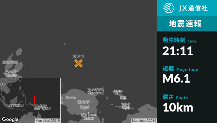 | 震源地 | インドネシアのManokwariから北北西311kmの地点 |