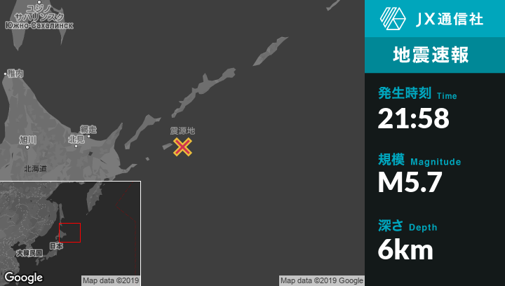 | 震源地 | ロシアのShikotanから東北東39kmの地点 |