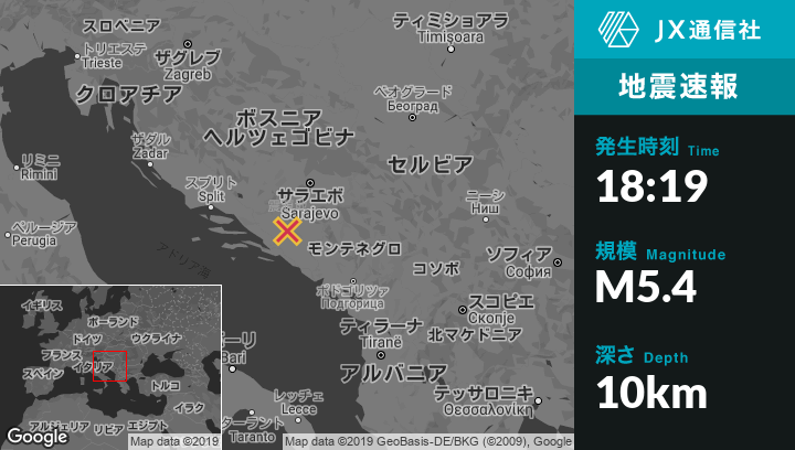 | 震源地 | ボスニア・ヘルツェゴビナのBlagajから東南東6kmの地点 |