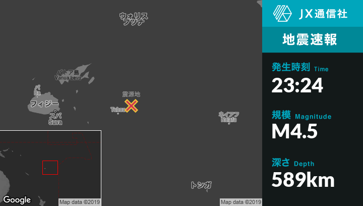 | 震源地 | フィジーのLambasaから東南東294kmの地点 |