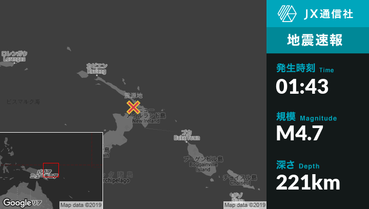 | 震源地 | パプアニューギニアのNamatanaiから南南西17kmの地点 |