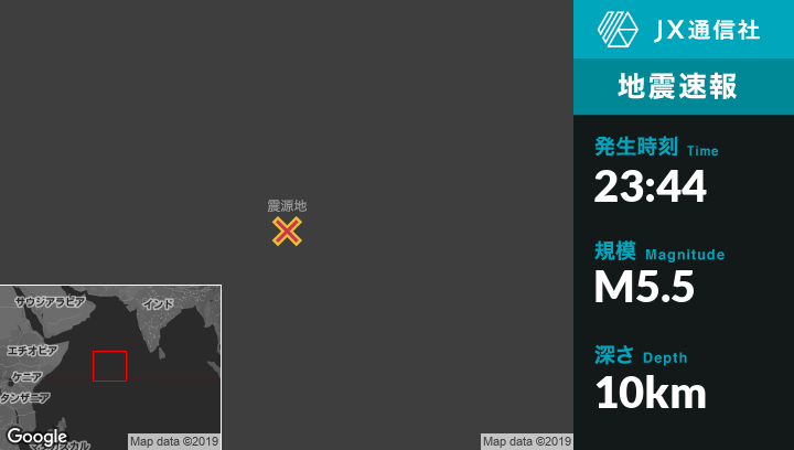 11月27日 23:44頃、モルディブのKudahuvadhooから西968kmの地点でM5.5の地震がありました。