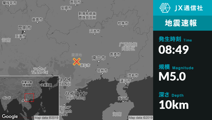 | 震源地 | 中国のTaochengから西43kmの地点 |