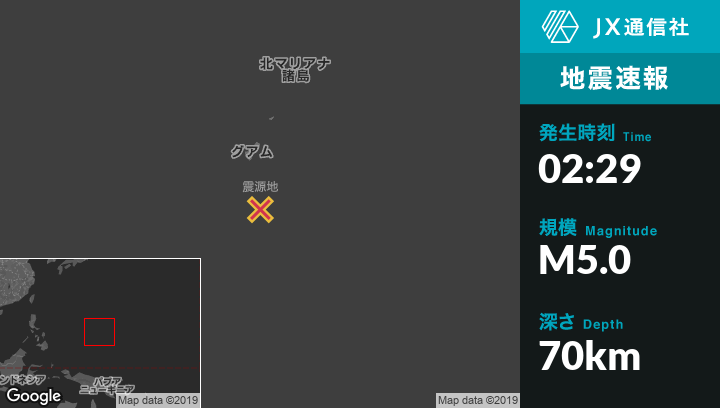 | 震源地 | グアムのInarajan Villageから南南東106kmの地点 |