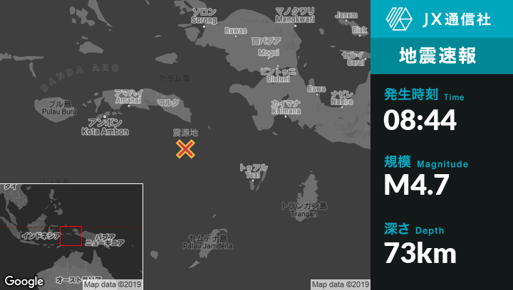 | 震源地 | インドネシアのAmahaiから南東236kmの地点 |