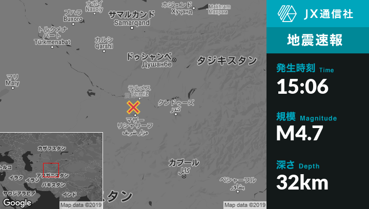 12月03日 15:06頃、アフガニスタンのQarchi Gakから東23kmの地点でM4.7の地震がありました。