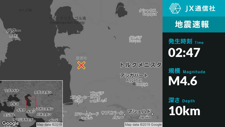 | 震源地 | トルクメニスタンのGumdagから南南東14kmの地点 |
