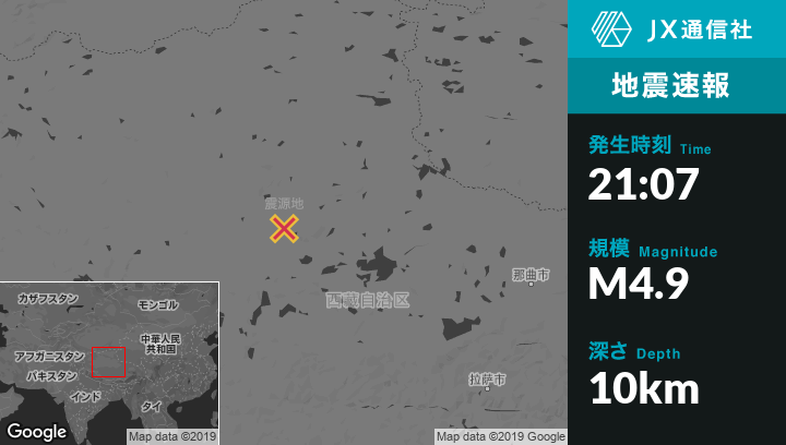 12月19日 21:07頃、中国のMaindongから北東205kmの地点でM4.9の地震がありました。