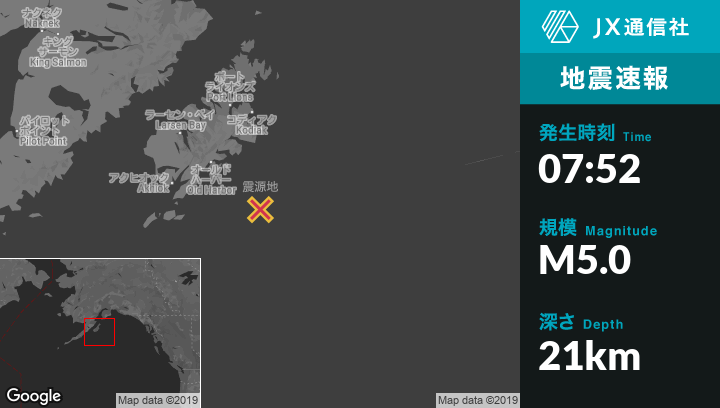 | 震源地 | アラスカのKodiak Stationから南121kmの地点 |