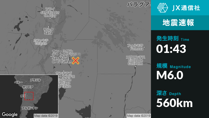 | 震源地 | アルゼンチンのEl Hoyoから西北西14kmの地点 |