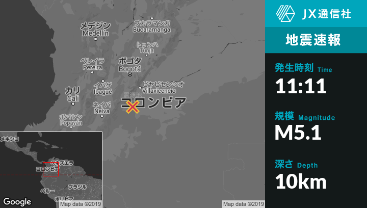 | 震源地 | コロンビアのLejaniasから南東10kmの地点 |