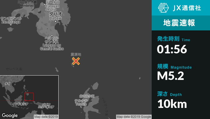| 震源地 | フィリピンのSaranganiから南東205kmの地点 |