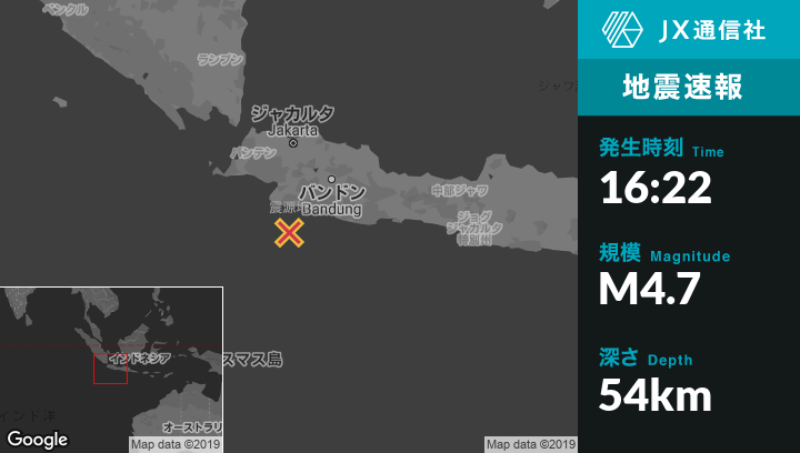 | 震源地 | インドネシアのBuniasihから南46kmの地点 |
