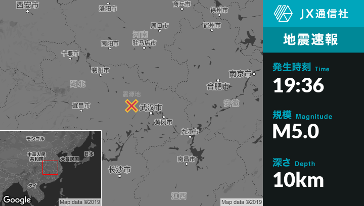 12月26日 19:36頃、中国のTiandianから南5kmの地点でM5.0の地震がありました。