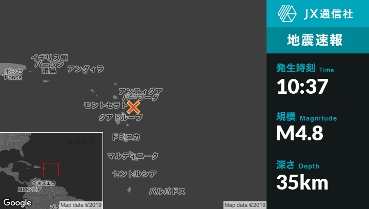 12月27日 10:37頃、グアドループのGrande Anseから北54kmの地点でM4.8の地震がありました。