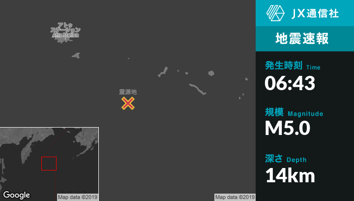 | 震源地 | アラスカのBuldir Islandから南129kmの地点 |