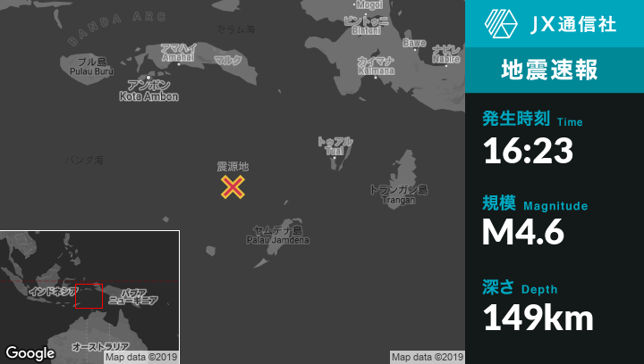 | 震源地 | インドネシアのSaumlakiから北北西223kmの地点 |