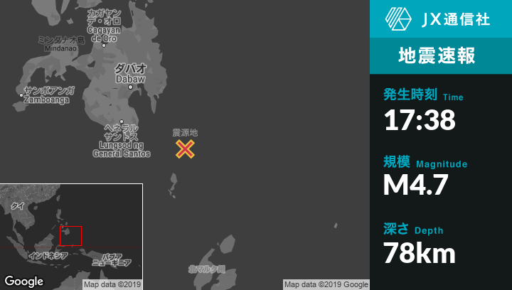 | 震源地 | フィリピンのPondaguitanから南東149kmの地点 |