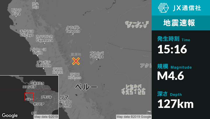 | 震源地 | ペルーのUchizaから東北東34kmの地点 |