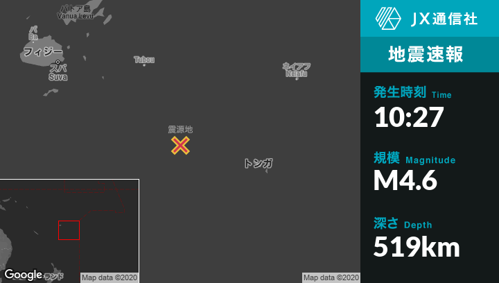 | 震源地 | フィジーのNdoi Islandから東108kmの地点 |