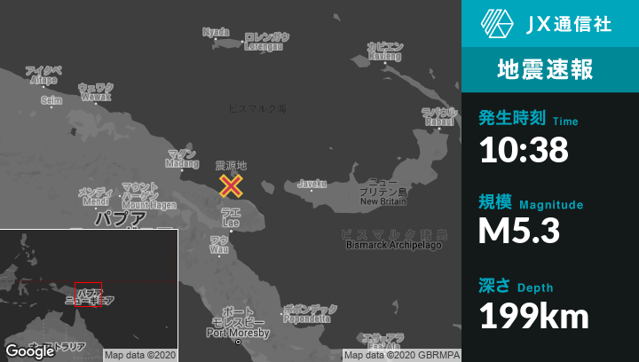 | 震源地 | パプアニューギニアのLaeから北137kmの地点 |