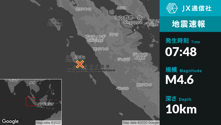 | 震源地 | インドネシアのMuara Siberutから南東16kmの地点 |