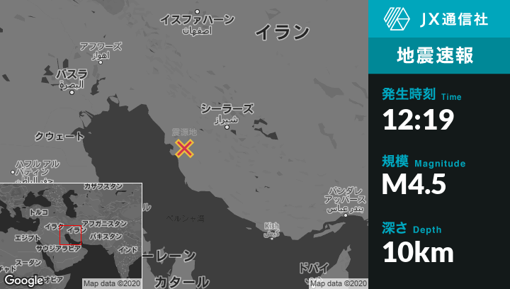1月08日 12:19頃、イランのBorazjanから南南東17kmの地点でM4.5の地震がありました。