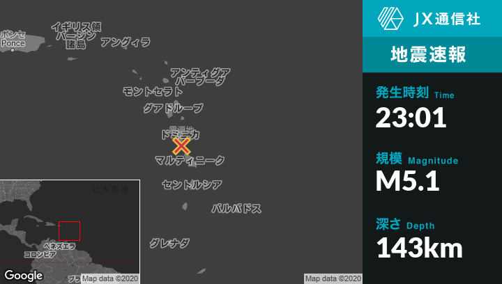| 震源地 | ドミニカ国のBerekuaから南南東2kmの地点 |