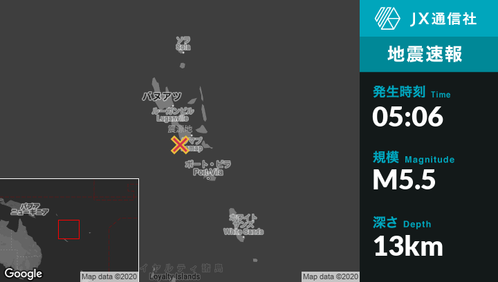 | 震源地 | バヌアツのLakatoroから南53kmの地点 |