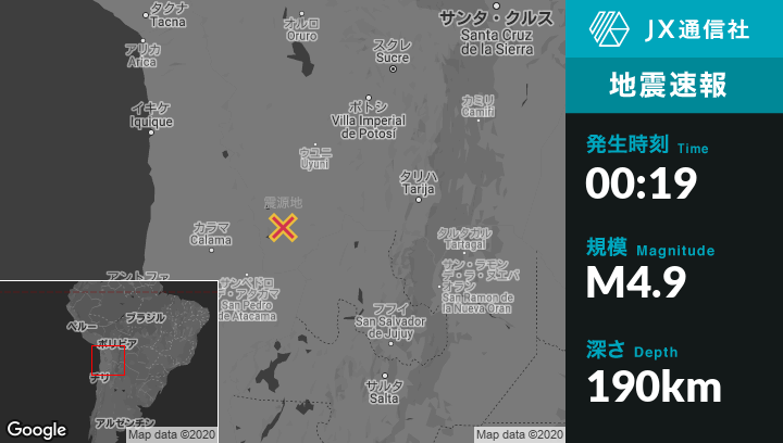 | 震源地 | チリのSan Pedro de Atacamaから北東133kmの地点 |