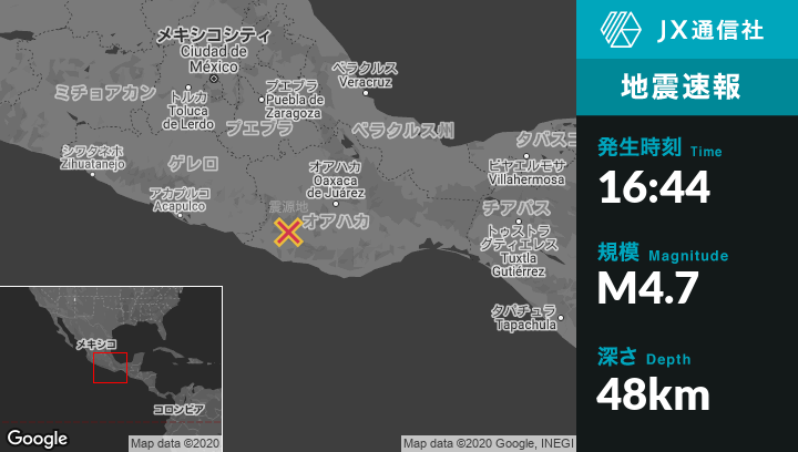| 震源地 | メキシコのSanta Maria Zacatepecから東南東34kmの地点 |
