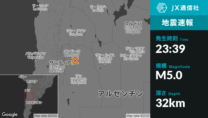 | 震源地 | アルゼンチンのSan Martinから北西17kmの地点 |
