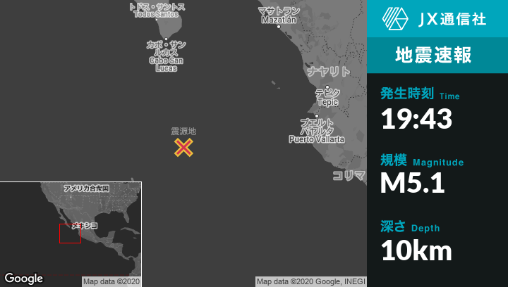| 震源地 | メキシコのSocorro Islandから北東206kmの地点 |