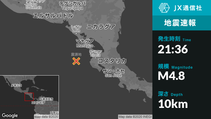 | 震源地 | コスタリカのSardinalから西135kmの地点 |
