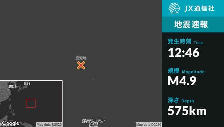 | 震源地 | 北マリアナ諸島のAgrihanから西北西99kmの地点 |