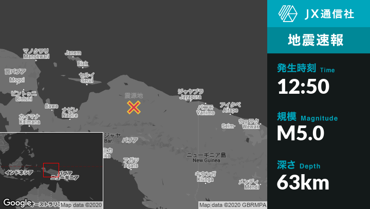 | 震源地 | インドネシアのEnarotaliから東北東245kmの地点 |
