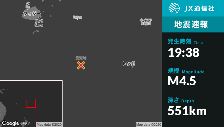 | 震源地 | フィジーのNdoi Islandから南南東57kmの地点 |