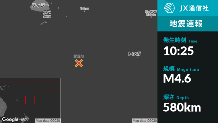 | 震源地 | フィジーのNdoi Islandから南南西125kmの地点 |