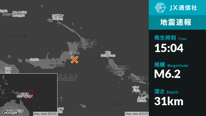 | 震源地 | パプアニューギニアのKokopoから南122kmの地点 |